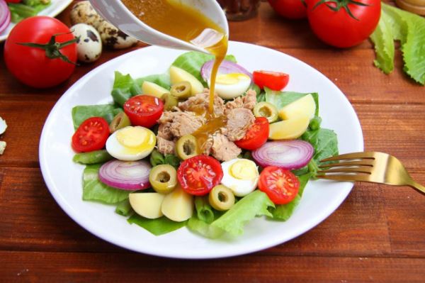 Классический салат Нисуаз с тунцом анчоусами и перепелиными яйцами