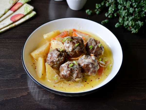 Картошка с фрикадельками в сметанном соусе