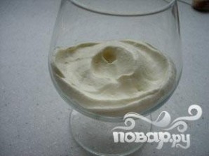 Положите первый слой крема в каждый стакан.