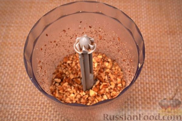 Орехи измельчить в чаше блендера с насадкой «нож».