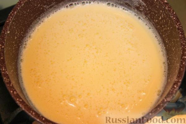 Вылить смесь в сотейник и варить на небольшом огне, постоянно помешивая, до загустения.