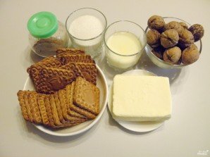 Приготовьте продукты для десерта. Орехи освободите от скорлупы.