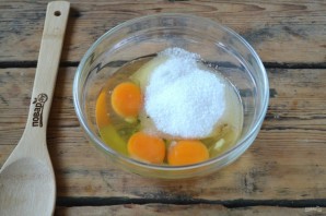 Яйца взбейте с сахаром, как на бисквит, до пышной пены. На это уйдет примерно 8-10 минут.