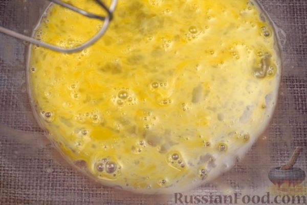 В миску отправляем яйцо, слегка перемешиваем венчиком.