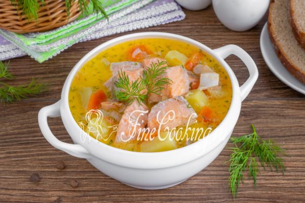 Рецепт рыбного супа из красной рыбы со сливками. Приготовим его из головы и хвоста форели с картошкой, луком и морковью. Уха по-фински (Лохикейтто) — самый вкусный рыбный суп!