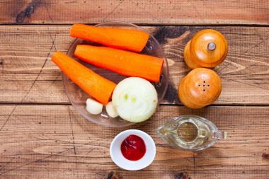Морковь — 500 гр Лук репчатый — 1 шт. (или по вкусу) Чеснок — 1 зубч. (или по вкусу) Томатная паста — 1 стол.л. (рафинированное) Растительное масло — 3 стол.л. (или по вкусу) Соль — 0.5 чайн.л. Перец черный молотый — по вкусу Таблица перевода объемных мер