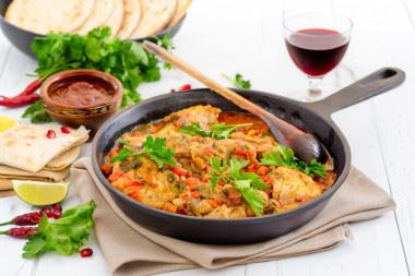 Очень ароматный, вкусный, сытный! Невозможно оторваться! Классический чахохбили из курицы по-грузински на сковороде входит в пятерку популярных грузинских блюд. Пряное куриное мясо, тушеное в соусе из помидоров и приправленное хмели-сунели станет прекрасной альтернативой жареной курице!