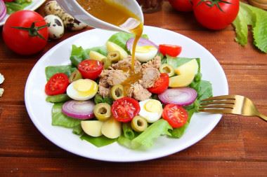 Изысканный, яркий, очень вкусный — настоящая пища богов! Классический салат Нисуаз с тунцом и анчоусами — это один из самых гармоничных по вкусу и аромату салат. Поэтому стоит убрать или добавить хоть один ингредиент, и будет уже совсем не то… Такой салат порадует даже самого утонченного гурмана!