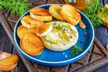 Пикантная горячая закуска для хорошей компании! Запеченный в духовке сыр камамбер с чесноком — настоящий деликатес для ценителей сырных блюд. Готовится за считанные минуты, а результат получается просто восхитительный! Подойдет на завтрак и для романтического ужина с красным вином или шампанским.