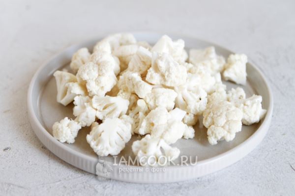 Цветную капусту разделайте на соцветия.