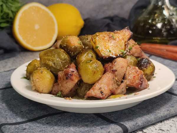 И вот такие румяные индейка с брюссельской капустой у меня получились. Мясо сочное, нежное, капуста мягкая, слегка с припеком).