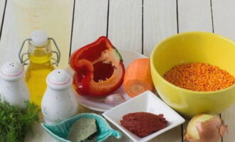 Как вкусно приготовить красную чечевицу? Достаем все нужные продукты по списку. Овощи очищаем и промываем.