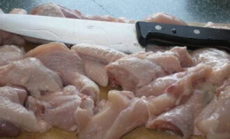Как приготовить рис с курицей в духовке? Куриную тушку помойте и разрежьте на порционные кусочки. Далее мясо замаринуйте с майонезом, солью и молотым перцем. Укройте миску с курицей и оставьте на час.