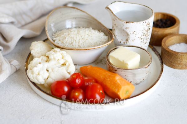 Соберите все необходимые ингредиенты для приготовления риса с овощами в пароварке. Набор овощей вы смело можно заменить. Овощи могут быть как свежими, так и замороженными.