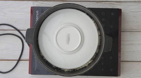 Затем поверх риса положите плоскую тарелку, и казан закройте крышкой. Готовьте плов еще 20–30 минут на маленьком огне. Затем головки чеснока удалите, плов перемешайте и снимите пробу. Узбекский плов в казане готов. Можете подавать к столу.
