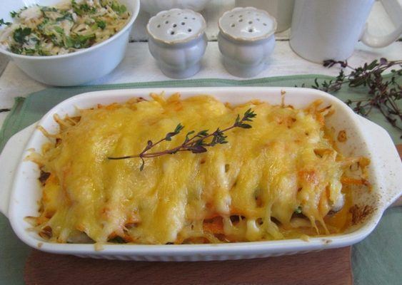 Запекайте минтай с луком и морковкой в духовке при 180 градусах в течение 25 минут. Готовое блюдо с аппетитной румяной сырной корочкой можно подавать на стол прямо в жаропрочной форме. Приятного аппетита!