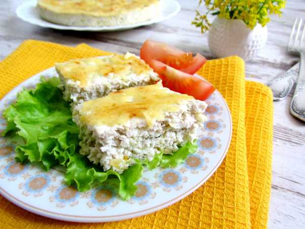 Готовую запеканку переложите на блюдо, нарежьте порционными кусочками и подавайте со свежими овощами и листьями салата.
