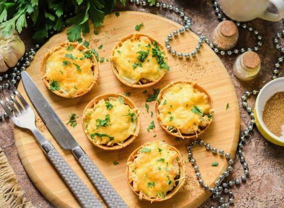 - Классический жульен в тарталетках с курицей и грибами