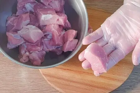 Нарезала мясо кусочками.