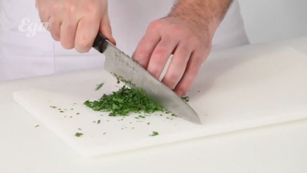 3 Приготовить приправу. Три больших пучка петрушки помыть и мелко порезать. 200 г молодой моркови почистить и потереть на крупной тёрке. Головку чеснока мелко порубить. Смешать все ингредиенты, добавлить 2 столовые ложки яблочного или виноградного уксуса.