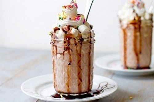 - Каждую оформить сверху маршмеллоу и шоколадным сиропом, украсить горячий ароматный кокачино взбитыми сливками, присыпать порошком какао
