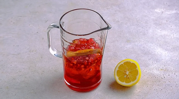 Когда хочется не только утолить жажду, но и подарить себе удовольствие от каждого глотка, готовьте гранатовый лимонад по этому рецепту — не просто заводной, а немного терпкий, с правильным балансом сладкого и кислого вкусов. Все потому что в одном кувшине встречаются гранатовый и лимонный соки, мед, теплая корица и свежие зерна граната. Подавайте гранатовый лимонад с соком охлажденным, словно пьете его в самый жаркий день. Он станет отличным дополнением к легким закускам, так что лучше подавать его в качестве аперитива.
