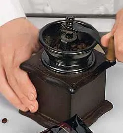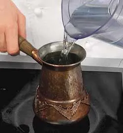 Кофе помолоть в мельнице или кофемолке. Пересыпать в турку.