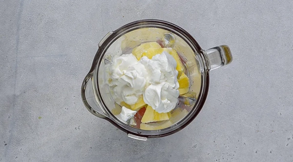 В чашу блендера положите грейпфрут, замороженную мякоть ананаса, греческий йогурт и подготовленный корень имбиря. Взбейте до однородной пышной массы.