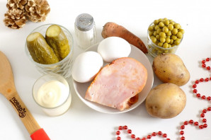 Подготовьте все ингредиенты. Заранее отварите картофель, морковь и яйца, остудите.