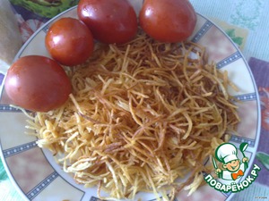 Теперь выкладываем жареный картофель. Ничем смазывать не нужно.