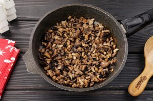 Шампиньоны нарежьте и обжарьте до испарения жидкости.