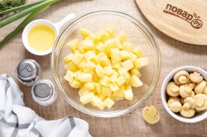 Картофель очистите от кожуры и порежьте кубиками. Переложите в глубокую миску.
