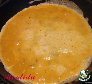 на раскаленной сковородке, в небольшом количестве масла жарим яичный блинчик -