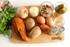 Подготовьте все ингредиенты. Картофель и яйца желательно отварить заранее и охладить.